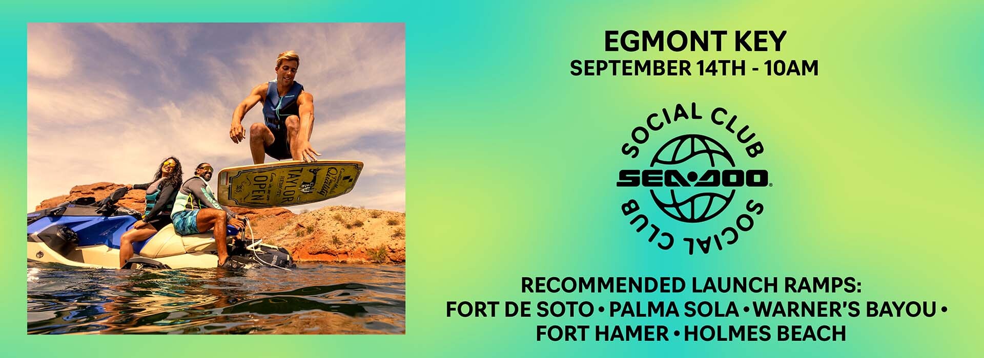 Get ready to ride, relax, and have a blast at the Sea-Doo Social Club, brought to you by Cycle Springs Powersports! Join us Sunday, September 14th at 10AM at Egmont Key for an unforgettable day on the water. Whether you're a Sea-Doo veteran or just love the water, this event is all about fun in the sun with fellow riders. RSVP now and join the adventure!