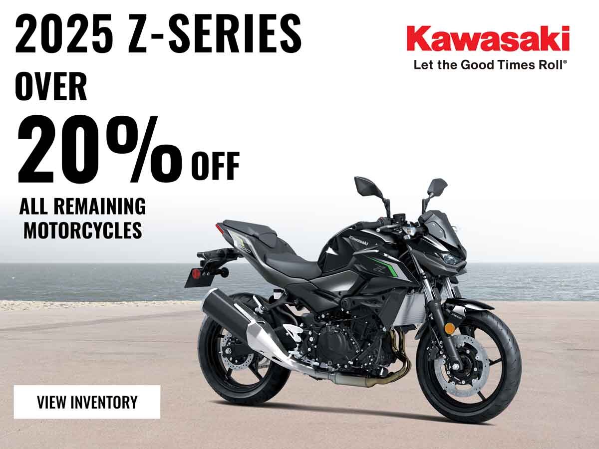 Stock# KE5415 2025 Kawasaki Z650 MSRP $8,149 Sale Price $6,191. Prices exclude tax, tag, dealer fee, and dealer added options and accessories.