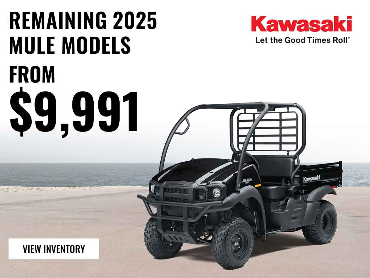 Stock# K51210. 2025 Kawasaki Mule Pro-MX. Prices exclude tax, tag, dealer fee, and dealer added options and accessories.