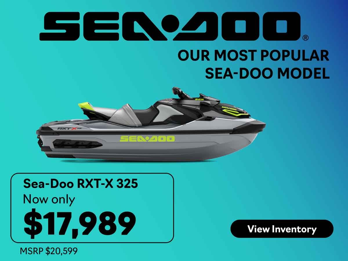 Stock# B63297. 2025 Sea-Doo RXT-X. Prices exclude tax, tag, dealer fee, and dealer added options and accessories.