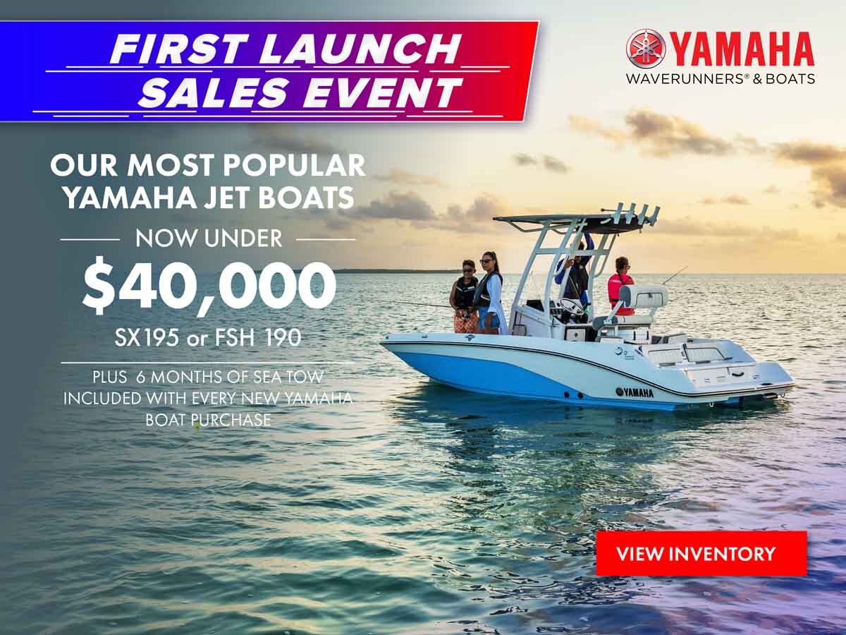 3.49% APR financing for 72 months at $15.41 per month per $1,000 financed. Must take delivery from retail stock of new (unused and not previously warranty registered) eligible in-stock 2020 – 2026 Yamaha Sport Boat models. Available on approved credit through Yamaha Financial Services. Not all buyers will qualify. Prices exclude tax, tag, dealer fee, and dealer added options and accessories. Offer valid through 3/31/2026.